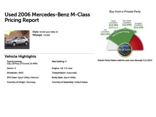 You are bidding on a nice 2006 M-class with lots of options. Leather seats, sunroof, power liftgate, powered seats, Navigation, Chrome wheels, etc. etc.