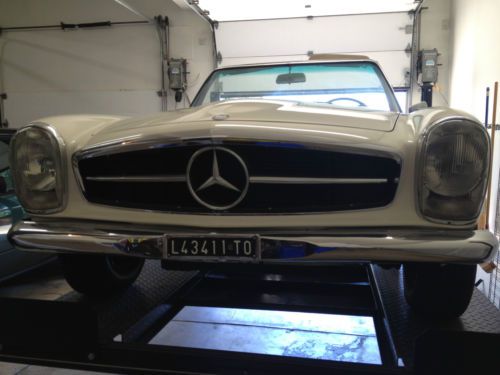 This 4 speed Pagoda was brought into the U.S. from Torino Italy In the 70's. The car was shown at the Concourse d' Elegance in 1979 and 1980. I purchased the car in 1997, it's always been kept in the garage, driven on Sundays and has never seen rain or snow since the day of purchase it. The under- carriage is very clean and rust free. I've never had any issues whatsoever with the car and have always professionally maintained it. I was told that the mileage which is in Kilometers is original. For a while I was hooked on buying parts for the car just in case! For example I have an extra transmission for it which comes with the car. I have never opened the glove compartment due to missing key and the soft top has been retracted from day one. Pagoda top is currently covered in storage and it's in great shape. Hopefully the pictures tell you how straight and solid the body is.