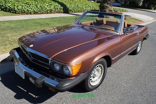 1978 Mercedes-Benz 450SL roadster with only 110K original miles in beautiful condition and in the rare special factory ordered 'Milan Brown Metallic' color paint with Bamboo MB Tex interior and a matching dark brown soft top and factory hard top! Purchased and always primarily serviced since new at local Mercedes-Benz dealerships and specialists with a thick file of all the cars service records including a copy of the original dealer invoice and window sticker!