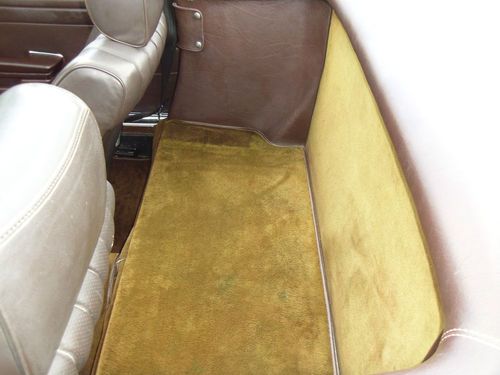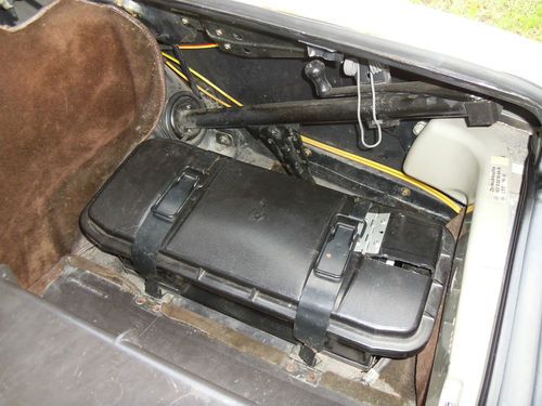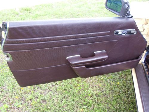 The dark brown leather interior is equal to the exterior. The dash top is perfect, as is the hard top and soft top. All the chrome trim where the seats are mounted and fold forward is in place, very common for these trim pieces to be missing or broken. The hard top comes with the storage rack. The carpet, door panels, and rear deck are also excellent, as is the trunk carpet.