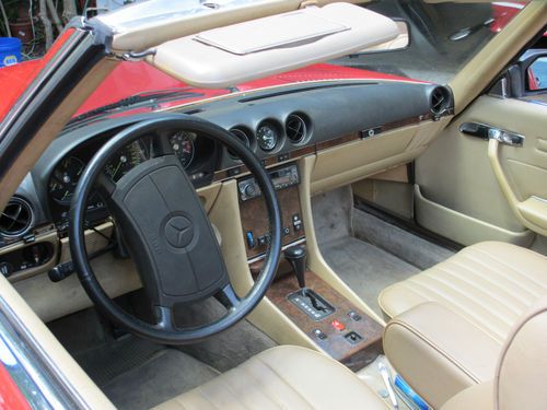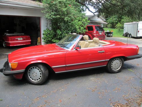 1987 Mercedes 560SL red exterior , palomino leather interior, 2 owner, Florida car no rust, excellent condition, both tops, no accidents