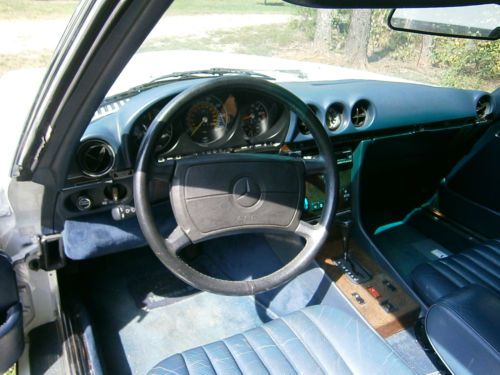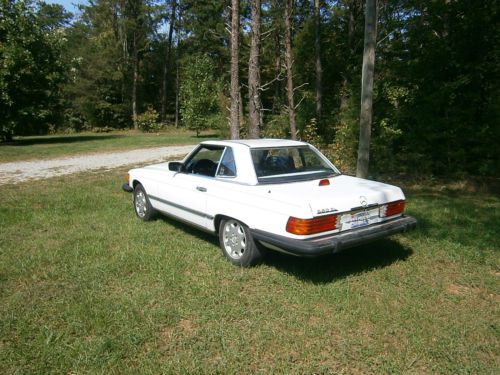1987 Mercedes Benz 560SL - White with blue interior. Rare rear seat. Hard and soft top. New starter, timing chain, antenna, tensioner and rails. Upgraded radio (original included). Updated wheels (original included). Small dime size ding on left rear (see pictures).