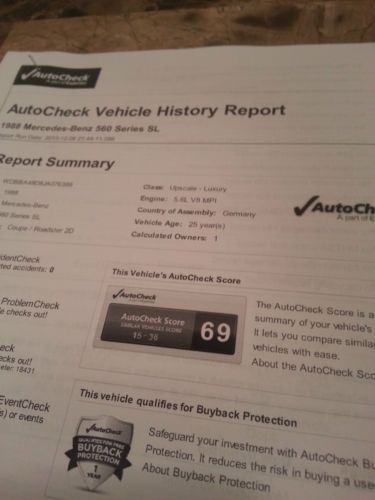 This 1988 Mercedes Benz 560SL vehicle has been kept in a climate controlled garage. Body and interior are in excellent shape It Has been maintained at the Mercedes Benz dealership its entire life. NO Dings dents, scrapes,or Accidents Still has its Original paint, Engine and Transmission are superb this car drives like new very tight strong and smooth Hardtop Softop No dissapointments buyer will be very happy with this SL. Any Questions feel free to call 954-225-7861. This is a 1 owner Elderly owned vehicle, And It comes with a clean carfax and autocheck report. Vehicle is also listed locally for sale And I reserve the right to end the auction early. If you are looking for a 1988 that get compliments where ever it goes this is the one you have been looking for. Payment - Deposit of $500.00 within 48 hours of auction close. Immediate deposit required for Buy it Now. Full payment required with 3 days of auction close. Full payment due before vehicle gets picked up. Shipping - Buyer responsible for vehicle inspection, shipping or pick up. vehicle listed locally also Coverage - The vehicle is eligible for up to $50,000 in Vehicle Purchase Protection when your transaction is complete online through ebay. To qualify you must be the winning bidder on an auction or click the Buy it Now button directly on the EBay side Restriction Apply |