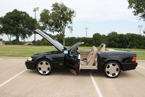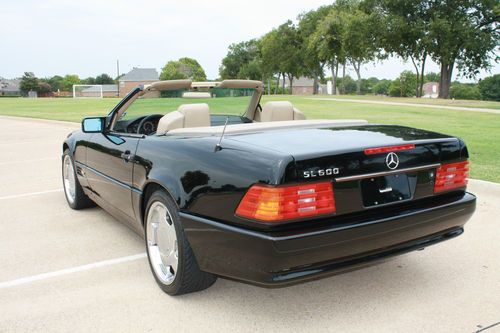 You are Bidding on an Absolutely Beautiful Black with Tan 1995 SL 600 Convertible. This Mercedes SL 600 is considered to be the Ultimate Luxury Sports Car from Germany. It has 83,624 Documented miles since its birth. The Interior and Exterior are in Outstanding Condition, The V-12 Engine 389 Horsepower is very responsive with the Stout 4-Speed Automatic Transmission. Perfect Example of German Engineering. This car drives Fantastic, wait till you get behind the wheel and feel the Power. This SL 600 is Powered by the Famous 6 Liter Engine V-12, Comes with Power ABS 4-Wheel Disc Brakes, 18-inch Lorinser Chromed Wheels, Factory Air Conditioning, Cruise Control, Power Windows/Seats/Heated Seats, Black Hard Top, Black Convertible Top, Automatic Leather Roll Bar, Original Windscreen, Mercedes Sound System, CD Changer, Cassette Player, Fog lights with Headlight Washers. As you can see in the Photos the Exterior Paint shines like New. The Interior is Tan Leather Upholstery that is in Excellent condition, the Leather Seats looks Fabulous, Dashboard and Door Panels Excellent shape, Carpet is Clean through out Cabin and Trunk area. Truly this SL 600 is in unbelievable Condition, it looks New. Definitely one of the Nicest Mercedes Convertibles in the Southwest Area, it drives Beautifully. Put the Top down and Cruise for Hours at a time. I know that the winner of this Auction will enjoy this Mercedes as much as we have. Good luck and if you live in the Dallas area you may see the car anytime during the Auction. The Mercedes is at my Home. Just email me to set up appointment.