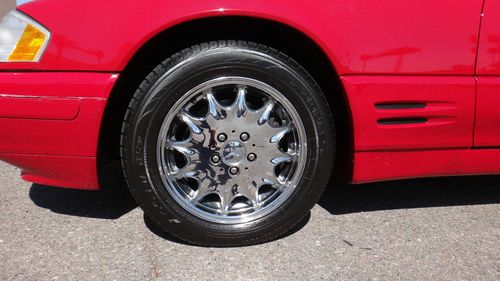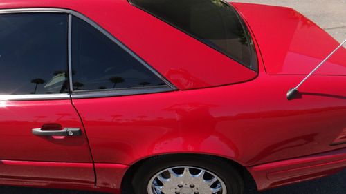 1996 SL320 convertible. We believe this to be a one owner vehicle, however, CarFax shows 2 registrations since new, Tucson and Phoenix (possibly the same owner). It has excellent original red paint. The vehicle has been garaged since new and also included is a car cover. The paint is really, really nice, especially for red that tends to fade after 17 years. It was a non-smokers vehicle with excellent parchment leather interior (for the age of the vehicle). The wood and carpet are also excellent and the seats have plenty of life in them. The A/C is ice cold and everything is working well. The tires are 90% and all matching. The brakes are excellent and this vehicle drives great! The chrome wheels are excellent with no curb rash. The hardtop is in excellent condition. We presume the soft top is like new as it appears that the hard top was never taken off the vehicle. We don't know the color of the soft top yet, but will update the auction as soon as we find out. The vehicle also includes the wind deflector when the top is down.