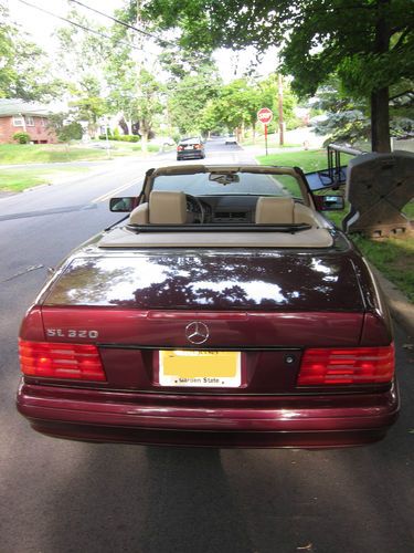 1996 Mercedes Benz SL320 V6 Engine Ruby Red Exterior Tan Interior Black Soft Top With Ruby Red Hard Top All Original 41K Miles. All Service Has Been Done, this is a very well cared for car. Car comes with Power Windows, Mirrors, Remote Entry, Dual Power Seats with Memory Heated Seats Leather Seats Power locks, Convertible Top Removable Hard Top Power Roll bar w/ Wind Screen, BOSE AM/FM/Cassette Stereo Cold Auto Air Conditioning Rear Defrost Cruise Control Power Tilt and Telescopic Wheel Storage Console Fog Lamps 18" Alloy Wheels Dual Air Bags ABS This Car Runs And Drives Excellent Clean Car Fax.