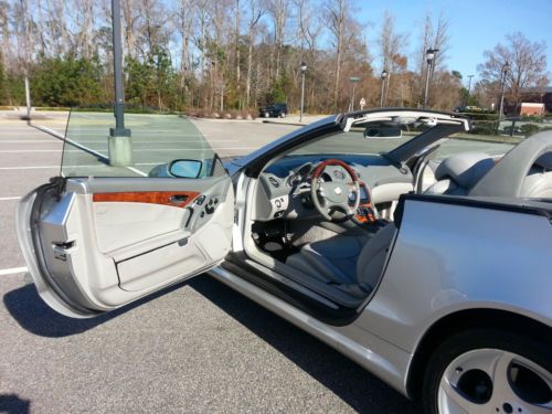 For sale is a Silver 2004 Mercedes Benz SL 500 with AMG package and grey leather interior. Car is equipped with all options including key-less start/go, premium wheels, panoramic roof, heated/cooled seats, memory seats, massaging chairs, power telescoping steering wheel, etc. Car has always undergone routine maintenance and just underwent Service B. It's good for another 10000 miles before it's due for maintenance.
