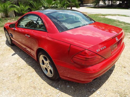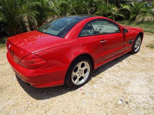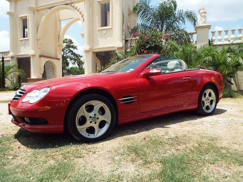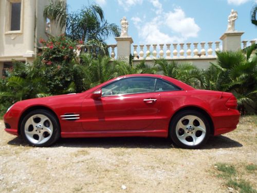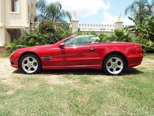 INTRODUCING THE 2004 Mercedes Benz SL500 Roadster- Sporty and Luxury 2 Door Hard PANORAMIC Top Convertible! THIS MERCEDES IS A ONE OWNER, VERY WELL MAINTAINED AND DEALER SERVICED VEHICLE WITH 37K ORIGINAL MILES! THE CAR LOOKS, RUNS AND DRIVES LIKE BRAND NEW! IT IS LOADED WITH OPTIONS SUCH AS PANORAMIC TOP,AMG SPORT PKG, TAN LEATHER POWER SEATS,HEATED SEATS,MEMORY SEATS OPTION, POWER HARD TOP, CRUISE CONTROL, AM/FM/CD AUDIO SYSTEM,NAVIGATION SYSTEM, POWER WINDOWS, POWER DOOR LOCKS, POWER MIRRORS,PUSH START,KEYLESS GO,XENON LIGHTS, FOG LIGHTS AND MORE! ALL THE OPTIONS FUNCTION ACCORDINGLY! THE POWERFULL 5.0L V8 ENGINE RUNS VERY GOOD AND AUTOMATIC TRANSMISSION SHIFTS SMOOTHLY INTO GEARS! THE RED EXTERIOR IS IN VERY GOOD AND HEALTHY CONDITION AND THE TAN LEATHER INTERIOR HAS BEEN KEPT VERY CLEAN!GARAGE KEPT/ SMOKE FREE!!! **BID WITH CONFIDENCE** Call