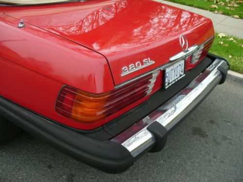 Rust Free California 1981 Mercedes Benz 380 SL Convertible. Signal Red with New Creme Beige Interior. 136,000 Original Miles. Dual Timing Chains and Recent Service. Perfect for any 107 Enthusiast. Runs and Drives Excellent. Hard and Soft Top. Soft Top is Beige. Upgraded 560 SL Alloys and Tires have 70% Tread Life Remaining. Looking for a Great Summer Convertible well this is the One. Amazing Price for a Piece of Mercedes History. Recent Service and has Passed California Emission Testing. Please call Keith for any additional information on this SL @626-253-1946. BUY it NOW or MAKE an OFFER. We are a Licensed and Bonded Dealer in Southern California and all California Residents will pay State Sales Tax, License Fees and a $ 125.00 Documentation and Smog Fee. We Welcome all European and Canadian Buyers and will assist with Low Cost Shipping anywhere in the U.S. Thanks and Happy Motoring