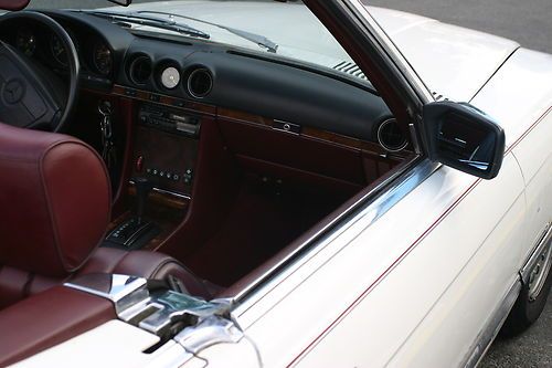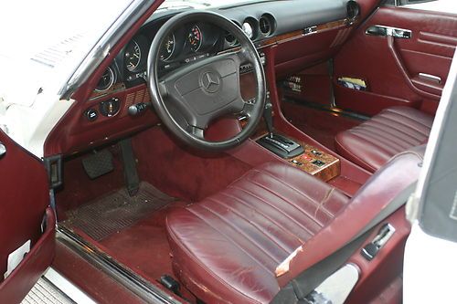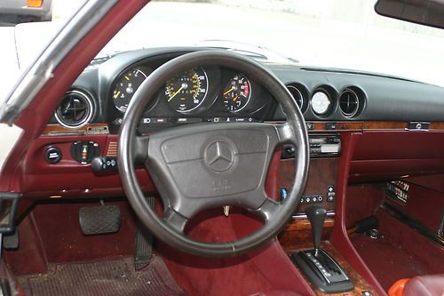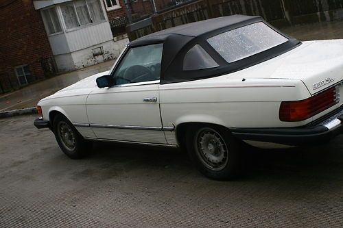 This is a 380SL 1985 it runs well and all options work.I purchesed it a month ago for my son,he likes it but its a bit to old for him and his freinds.The car starts right up,AC ice cold all electrics work.The car has a few scratches and 2 spots of rust as shown in photos.The interior is very clean with a rip on drivers seat bulster shown in photos,The car comes with Hard and Soft top,soft top has minor 5 inch rip tht was covered with good results by heavy duty tape no leaks.Payment due within 3 days deposit within 48 hours.pickup by buyer.The trans shifts well no slipege,enginge runs perfect.The car can be inspected prior to bigging.If you do not plan on buying please do not bid.