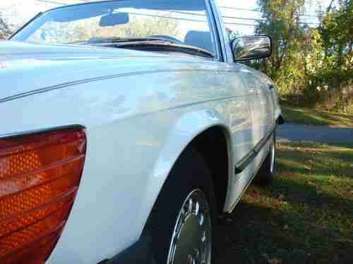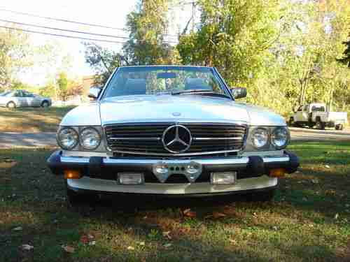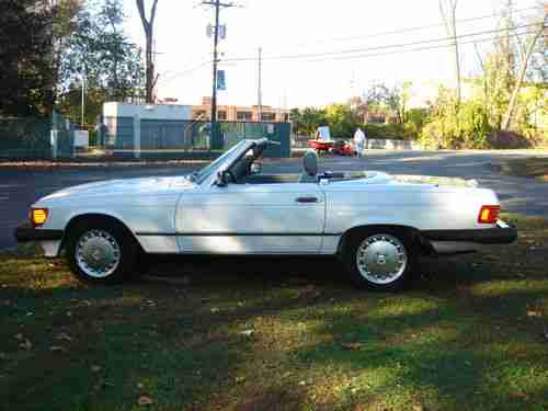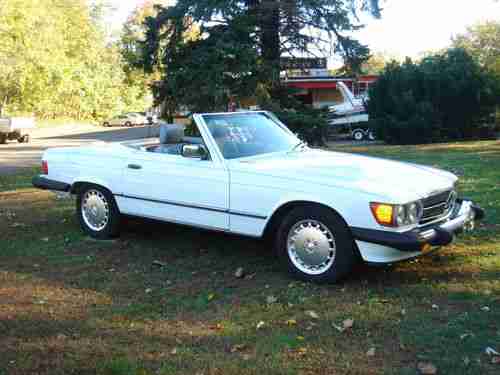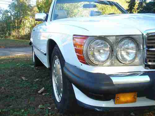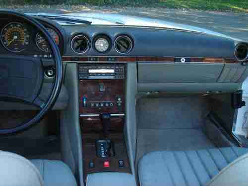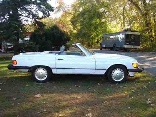 MERCEDES BENZ 1989 560SL ROADSTER WHITE AND GRAY LEATHER AND BLACK SOFT TOP&HARD TOP, LAST MODEL YEAR MADE,EVERYTHING REPAIRED AND READY TO DRIVE, NEW ENGINE MOUNTHS AND TRANSMISSION MOUNTHS, NEW BRAKE ROTORS,BRAKE CALIPER,BRAKE HOSES, BRAKE PADS AND BRAKE FLUID, A/C REPAIRED CENTER VENT WORKS, NEW 134a FREEON, SPARK PLUGS,NEW BECKER RADIO,ALL NEW BULBS, HOOD PAD, VALVE COVER GASKETS,OIL AND FILTER,NEW WINDOW SWITCHES,NEW BATTERIE,NEW DRIVER LEATHER SEAT, STEERING SHOCK,TRANSMISSION SERVICE,NEW TRANS OIL PUMP,FAN RESISTER,AIR FILTER,STEERING FILTER,NEW TIRE VALVES AND GOOD TIRES,
