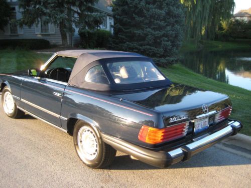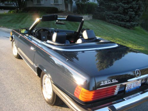 This is a fully optioned Mercedes-Benz 380 SL Roadster with leather interior and hard top. Car was converted to double chain link. Car has been garage kept and covered and is in near mint condition. Recently had wheels professionally repainted (powder coat/clear coat) in factory satin silver. Recently replaced speakers. Runs fantastic and everything is in working condition.