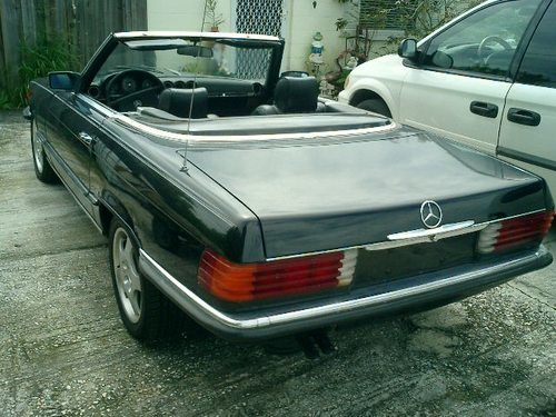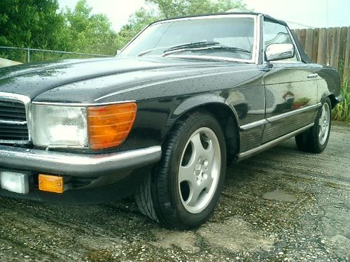 1983 Mercedes 280sl Mercedes with 68013 original miles. I bought this car from the storage, been stored years. Car is in running condition, starts easy, some hesitation cold, after warm up runs good, I didn't go to highway I just drive around my shop, engine sounds very good shifts smooth. Brakes in operating condition. Air conditioner and radio not working. Brand new tires, straight body been repainted for black years ago, original color was gray, they repainted outside only, door jams still has the original gray color. No visible rust. Rims not original I think came from newer car, but I have a other 380SL Mercedes with original rims, your choice, you can take that This is a project car, so highly recommended come or hire someone who can inspect the car for you before you bid on it. Sold absolutely AS-IS condition! If you have question or you want to come for inspect the car please call 321-258-7616. I'm selling this car locally also so maybe end auction early if I have buyer here. Nice restoration project or just every day drive