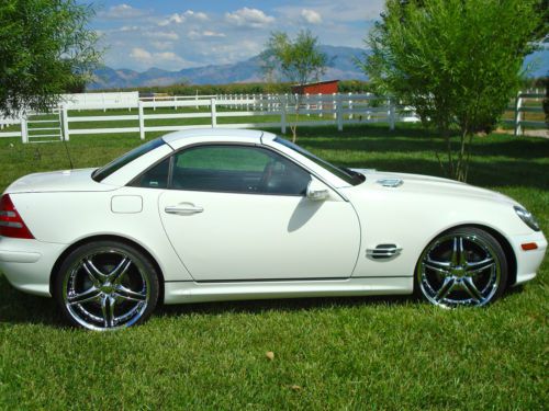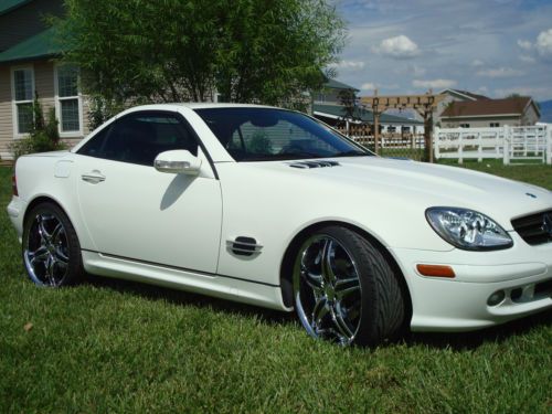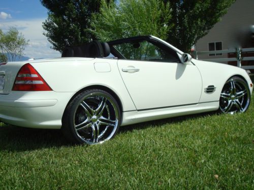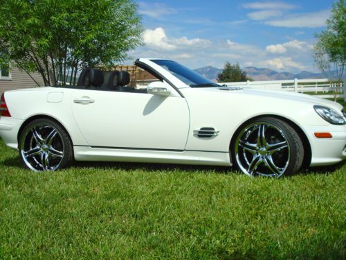 The car has been adult driven only and never drove hard. We bought the car out of southern California and it has been our weekend play car only. The car has never been driven in the snow or been exposed to Utah's famous salty roads! Keep it covered up and stored during the winter months. The pictures were taken in the fall of 2013 before I put the car to bed for the winter. Other than the obvious custom 20" wheels and tires upgrade, I have had the sound system completed upgraded to todays technologies and professionally installed. The car also has custom upgraded Xenon style head lights and custom aftermarket grill. The lucky buyer of this beautiful SLK will also receive the original set of barely used wheels and tires. All of the original Bose sound system equipment which includes the original stereo, a 6 disc changer, all speakers and cabling. The car also comes with a car cover and the original headlights and grill. I have the title on hand ready to transfer to the new owner. Immediate $1,000.00 non refundable deposit required to hold. Full payment within 7 days of auction ending. Buyer is responsible for all inspection, taxes, licensing, shipping and handling charges. For inquiries or any questions what so ever please feel free to call or text 801-725-7005 or email at jfullerfcc@yahoo.com Thanks for reading! |