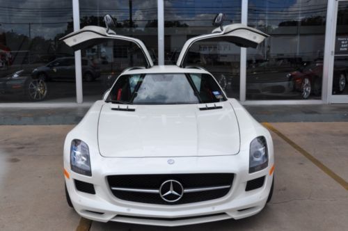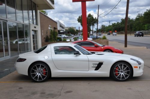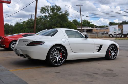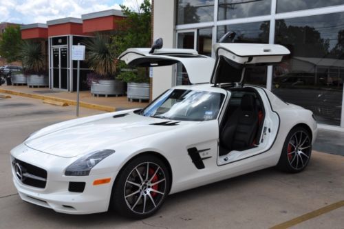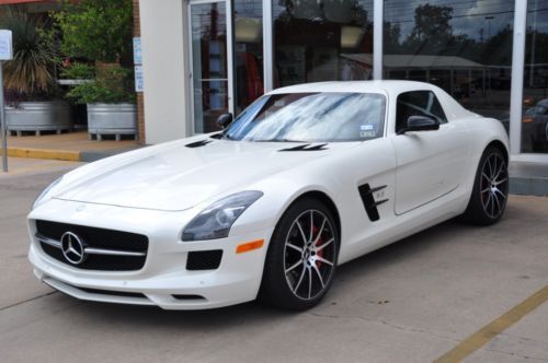 This 583HP 2013 Mercedes SLS AMG GT coupe is almost new. It had an original MSRP price of $210,425 and our reserve is much less than that. It is in beautiful overall condition showing no wear on the interior or rock chips on the exterior. there has never been any paint work and no reconditioning is requred. Bid with confidence, this car is being offered for sale by FErrari of Austin in Austin texas, home of the USGP. Feel free to call us with your questions, ask for our sales manager Erik Clover (512) 380-0231. The SLS GT has had a few upgrades for the stadard SLS. The most obvious is the addition of another 20hp. The sounds eminating from this engine have been drastically improved upon. There is no doubt you are driving an exotic. It also gets the all new AMG adaptive performance suspension featuring stiffer and more aggresive dempening. It also rides on an all new set of two tone staggered 10-spoke wheels. Take a look at the photos, this is one beautiful Mercedes.