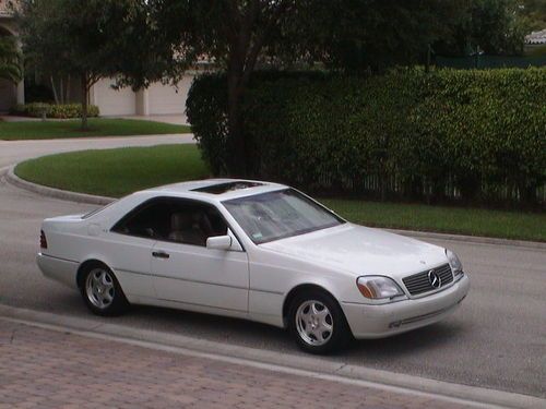 1999 Mercedes-Benz CL600 6.0 Liter V12, White w/2-tone Tan & beige leather and woodgrain interior, tilt & telescopic leather & woodgrain steering wheel & gear shifter, 12-way dual power 3-memory heated front seats w/power headrests & power lumbar, smoked glass power sunroof w/tilt & suede shade, power rear sunshade, front & rear parking sensors, pillar-less dual pane power windows, power mirrors w/power tuck-in capability, power locks, mint stock alloy wheels w/Michelin MXV4 Energy tires, chrome door sills, xenon headlights w/wipers & fog lights, dual front & side airbags, brand new full set of factory carpeted floor mats. This car is one of the most beautiful CL's I have ever seen. This is an Autocheck Assured vehicle and qualifies for their Buyback guarantee. I have some additional pictures that I will email upon request. BUY-IT-NOW $19,500 OBO!!!