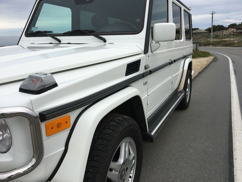 2002 Mercedes Benz G500. Immaculate in highly desirable White with black interior color combination. Vehicle is in truly pristine condition, never offloaded, always garaged and always hand washed. This is a Well sorted G500 and it a daily driver. Newer OEM tires, OEM brakes, front window regulators, serviced and ready to go. Spotless, not a scratch on it, like new condition, non nicer, clean clear title in hand, no accidents, never smoked in. SPOTLESS. Located in Monterey, ca. Tons of service records included. Still has original interior warning stickers from factory. 500 dollar non refundable deposit due upon using the buy it now option. All and any inspections welcomed. 2019 California Registration just paid, has all season matts as well as flawless original poem carpet matts, brush guard and all factory. There is Zero rust, no scratches, no dents, interior is flawless and shows virtually as new.