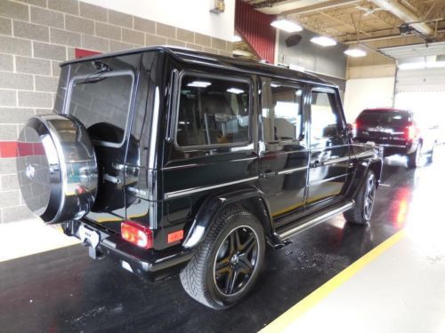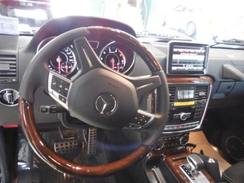 Wood/Leather Steering Wheel, COMAND System With Central Controller, 80GB Hard-Drive Navigation, Hands-Free Bluetooth Interface, HD Radio™ Receiver, Dual-Zone Climate Control, Heated And Active Ventilated Front Seats, Multi-Contour Front Seats, Heated Rear Seats, Heated Power Side Mirrors With Power Fold-In, ECO Start/Stop System, Permanent All-Wheel Drive With 2-Speed Transfer Case, Three Lockable Differentials, AMG Sport Exhaust, Blind Spot Assist, DISTRONIC PLUS, PARKTRONIC, Blind Spot Assist, Rear View Camera, Bi-Xenon Headlamps, LED Daytime Running Lamps, Mercedes-Benz Mbrace2™ The G63 features a much more aggressive overall look than its predecessor, the G55, particularly due to a lower front fascia that is almost completely dominated by three enormous air intakes.