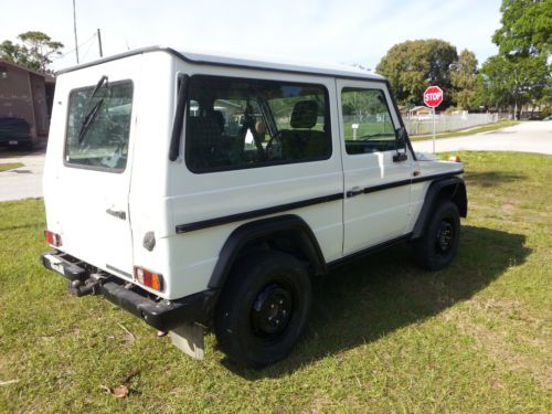 Ebay does not recognize Europeans vins so the real vin is WDB46033217047783.This G Mercedes will be sold with clean and clear florida title.Import from Europe,left hand drive.Can be seen in sunny st pete florida.UNLIKE some other sellers here on Ebay,ALL my vehicles are sold WITH a clean and clear Florida title,NOT with a promise from a seller somewhere overseas in another country since I know for a fact,there are a few Gs on ebay that will NOT pass USA customs and WILL be seized and destroyed and your money is gone also,some where overseas.IF things sounds too good to be true,it probably is :-).I also don't let friends or family bid on my stuff to pump the prices up.If I relist,its just because it didn't meet reserve and no one contacted me later.I see a lot of imports do crazy prices and get sold and then being relisted a week later :-).I also see Gs here on Ebay,coming from the same sources as where I find mine,and I passed on them since they where to crappy,and are being sold here by others and being described as nice vehicles,thats easy from overseas,no recourse.But they where cheap,or not :-)Be careful,its a jungle out there :-) ,grass is always greener on the other side,make sure you check my 15 years on ebay and my perfect feedback with never a negative,thank you. Pauls Haus of G and other imports offers: A good and solid white 2 door 1986 300GD, Powerful 5 cylinder Mercedes diesel,RARE automatic,4x4.I have installed pretty black leather seats in front.Also installed new black carpet in front and in cargo area. The tranny shifts smooth without sounds.No ac,decent tires.Has radio/cd player.Engine purrs like a kitten and is powerfull. No hidden flaws,all is in good working condition.Head liner is hard but lil saggy in the middle,hardly noticeable. No financing so make sure you talked with the wife and counted your money,feel free to call me anytime 727 259 3021 Paul 1000 deposit within 1 hour of auction ends,balance to be paid within 3 days,storage free for as long as you need and yes,i will assist with nationwide transport.And if u don't have snow,it wont look bad in the mountains,desert,beach or mudbog either :-).Truck was grey,i have photos but the paint was shot so I had it repainted in white,including the doorjams.I always have several European imports in stock like diesel vans,diesel rvs,landcruiser, landrovers and G wagons and what ever rare diesel I can get like unimogs,man,vw lt,and Japanese left hand drive diesel 4x4s.The G-RV will be here around may.We are a licensed and bonded dealership in sunny st pete florida,30 years,same name ,same ownership,same location.Since 99 on ebay,never a negative. ,etc,etc.These vehicles run easily 30 to 35 miles the gallon.Or convert it to veggie oil and drive around for 75 cents the gallon.She drives like a dream.Clean and clear Fla title.Sold as is no warranties implied. Small indication,transport price,st pete to los angeles,roughly $ 1000,- and to Ct/Pa roughly $700,-/$800.- For the California buyers,ive sold a bunch of units to California and I never gotten any complaints from customers not being able to register the vehicle they bought from me.Remember,my vehicles come with Fla titles. My brother buys the vehicles for me in Western Europe,he is a active police officer/border patrol agent who works for me in his free time so I don't have to worry when I need to send money overseas :-) or that I get lemons or basket cases :-).My retired sister does the buying for me of the vehicles I buy in Spain and France,since she lives there and speak the languages and again no worries that my money is gone when i send it overseas:-)I do not assist with buying and shipping overseas vehicles to usa for third parties,neither do I assist with the import part and paperwork of it.But yes,i will assist finding the right truck for you for a great price.Just add me as a favorite seller and you will be notified when I list new vehicles on Ebay. No financing so make sure you talked with the wife and counted your money,prior to bidding.Feel free to call me anytime 727 259 3021 Paul 1000 deposit within 1 hour of auction ends,balance to be paid as soon as the truck is in my lot and has a florida title,storage free for as long as you need and yes,i will assist with nationwide transport.I always have several European imports in stock like diesel vans,diesel rvs,landcruiser, landrovers and G wagons and what ever rare diesel I can get like unimogs,man,vw lt,and Japanese left hand drive diesel 4x4s.The G-RV camper will be here around may/june.We are a licensed and bonded dealership in sunny st pete florida,30 years,same name ,same ownership,same location.Since 99 on ebay,never a negative. ,etc,etc.These vehicles run easily 30 to 35 miles the gallon.Or convert it to veggie oil and drive around for 75 cents the gallon. I also have 4 landcruisers diesels.I also buy Harleys for export.If u have one,i might want it:-).I only accept Paypal for deposits.I accept cashier checks and wire transfers,No personal checks. In stock in St Pete: 1984 green 4 door 300GD leather,5 speed manual,no ac.Very decent driver. 1984 bluegrey 2 door 300GD 4 speed manual,leather,no ac.Very nice truck. 1984 yellow 309D pre-sprinter van,9 passenger model,5 speed,5 cylinder,powersteering,no ac.Very nice van. 4 Toyota landcruiser diesels. Mid april I expect 3 more four door 300GDs,a military wolf convertible 240GD and a regular convertible 300GD. Early may I expect 2 two door 300GD plus a very rare 300GD 2 door,long wheel base kasten wagen (panel wagon) and a rare Puch 300GD 4 door and a red 4 door 300GD plus a white landrover Santana defender diesel.I also expect a 4 door Unimog with crane,1985,diesel. I entertain offers on this white 300GD (and my others) and for the right money,ill end the listing early.I do not have a website but usually I can also be found on Tampa Cr aigs. On Jan-30-14 at 07:16:30 PST, seller added the following information: for the 4 door lovers,im getting in a 4 door automa