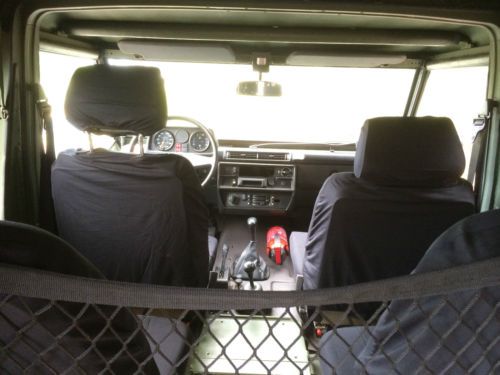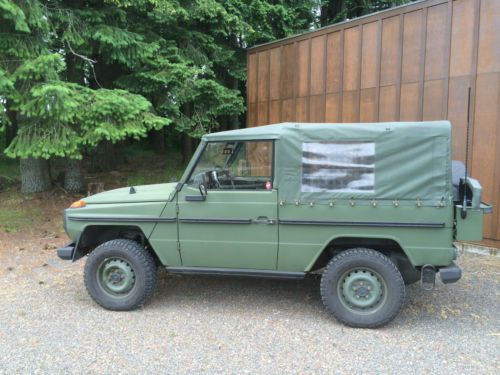 Up for sale is this very nice and rare Mercedes 250GD 2 door, short wheel base with 5 speed manual transmission with extra short 1st gear. Drives and shifts great. It has 2 diff locks (front and rear axle). This G-Model has a 24V system and a km speedometer. The condition of the frame and undercarriage is excellent as it has been wax protected (which looks somewhat yellowish/rusty in the pictures however it’s protective wax) and it has never been used off road while I owned it. This truck has been meticulously, maintained and was always garaged. The cover is only a few years old, no rips or tears; all zippers work as they should. All rear seating areas have removable netting installed (see pictures). This vehicle comes with original spare wheel cover, jerry can holder, mounted fire stick radio antenna and cable (not yet hooked up to a radio), original fire extinguisher, army first aid kid, map reading light and lots more ( see pictures). Vehicle has power steering. Once the cover is taken off the windshield folds down onto the hood. Tires are Good Year with kevlar layers to prevent punctures. Body and paint are in great condition. Very rust arm truck (see picture) with some small areas that need attention. The odometer shows 16,971 KM (10,545miles). Since the odometer only has 5 digits it could be 116,971 (72,682miles). However it drives like 16,971km. Ebay did not recognize the VIN, since this vehicle was imported from Europe. The VIN is: WDB46140117070673. It comes with a clean Oregon title. I just don't have the time to drive it and hence I am selling it. This vehicle is sold as is, where is, no warranties implied or given. |