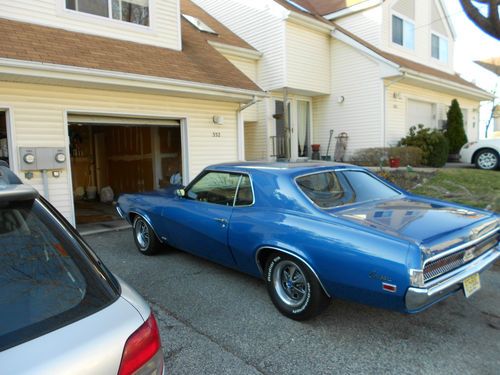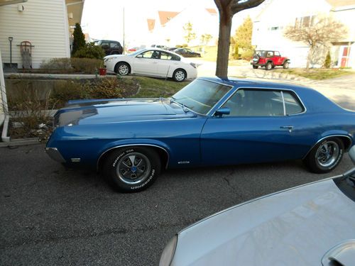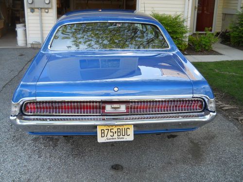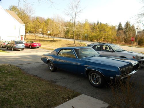 1969 Mercury Cougar Blue with black interior matching numbers 390 3spd manual transmission P/S M/B AM/FM stereo 8 track aftermarket A/C road style wheels new tires w couple thousand miles engine rebuilt about 2,000 mi ago which I was told by previous Owner. paint and interior done also in same time frame. When I bought the car I got the original title back from 69 its a 2 owner car originally came from Georgia when it was brand new and stayed down south until I bought almost 2 years ago. since i have had its been garaged never seen bad weather. The car overall is in very good shape no rust or signs of body work or past damage. I have the mart report that comes with car and it is rare with engine options color etc. this runs beautiful I would not hesitate to drive to California. it does need a little work to bring it to show condition there are chips in the paint all the windows need to lined up and weather stripping needs to be replaced interior is overall in great shape seats are perfect carpet is in great condition dash is perfect head liner very good shape speedometer does not work all other gauges work some being after market. One of windshield blades are missing I never got a replacement because I never drove in bad weather A/c is not working but all mechanicals are still there. you do not see many big block cougars come up that much. The car is quick and beautiful