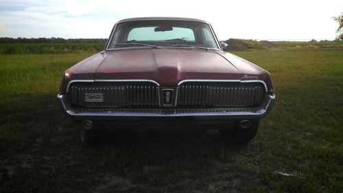 I Have a getting hard to find 1967 cougar that I bought to restore but now have other project to do and no time to put on this one. I bought this from a person that had put a lot of money in the motor it has a 302 bored 40 over with a big cam and it also has aluminum JEGS heads on it witch are around a $1000 by them self. It however has been in a Garage for 7 years I took it home on a trailer and got it running and it does have some power but it seems the it has a main bearing Knocking or wrist pins ??? don't no much about motors or the car other then the little bit they knew the motor I was told has less then 3500 miles on it. I had two mechanics tell me it was the risk pins and one tell me it was the main we did drop the oil pan and all rods seem to be fine. Other then the noise when it warms up this car has a lot of power and runs pretty fair but could use some carb work but runs good after warmed up so not bad for sitting that long. But it is a restore project for sure. All lights work but has a lot of wire splices in it. the head light lids don't open by them self but i see the air lines going to them are not even hooked up and looked to be a little rotten. Not much rust from what i can see it does look like it has had some body work done last time it was fixed up but not sure what. The body looks pretty straight there is some spots in the trunk that have rusted threw but they are small. it has air shocks on back and traction bars i think under the back with a posi rear-end. I was told it was built to race however the car looks to be all there other then the center column is gone and replaced with race shifter also is missing some dash parts like glove box and radio and dash cover is in bad shape all glass is good the back driver side widow seems to be off the track. Their are no locks in this car also you have to flip a toggle switch on then turn the key to make it start.. so unless you no that it will turn over but not start until you flip that on. should be a easy fix i put the new ignition switch in it but i think their is a wire that need to be hooked back up for the key to do all the work again ???.