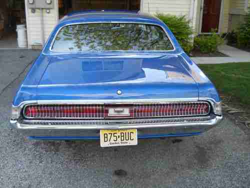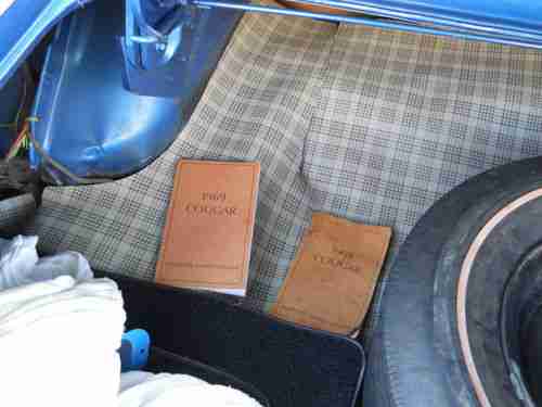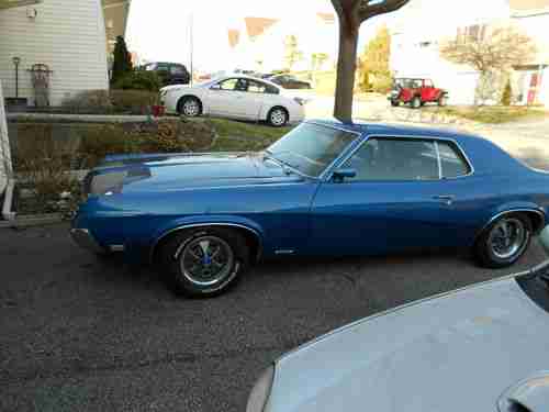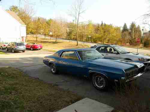 1969 Mercury Cougar 2DR Hardtop Blue with Black interior matching numbers 390 3 spd manual P/S manual brakes A/C deluxe interior this car overall is in very good shape the body is solid no filler the bottom of the car is in great shape frame rails are straight this car is from the south most of its life up until the last 2 years since I have owned the car it has been garaged I have never driven it in rain or snow this car was restored it has about 2,000 mi on engine trans clutch tires are almost brand new interior was redone new exhaust carb original carb is in trunk that goes with the car. The engine runs perfect it was detailed to factory when rebuilt it is good quality paint job with some chips car has no dents or signs of accident the interior is in great shape headliner great seats perfect dash perfect carpet great shape this car is a driver car it runs at 180 degrees all day long any kind of weather I rebuilt the radiator on the car new fan I changed the oil every 3 months I use marvel mystery oil in the car. It is viewed as driver quality it does need a few little things the weather stripping around all windows the doors need to be lined up and hood the doors do not sag there is no structural issues what so ever with this. I do have Marti report that goes with the car this car is rare as per marti report. i will break it down for you
