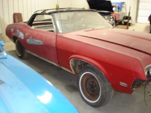 Thank you for looking at my 1969 Mercury Cougar convertible. The car has all original sheet metal and as near rust free of a 60's car as I've ever had. The car was always a Southern car and was originally Wimbledon White. The underneath is still the factory white (see the pictures). At some point, many years ago, the Cougar was painted red. The exterior had a few very small areas of the beginning of rust and you can see where the body shop cut it out the small areas. The car comes mostly complete and with new parts (see the pictures). The front and rear bumpers are included. Some of the original engine parts and all the glass is included as well. The Cougar is an original 351 V8 Four Barrel car. The Cougar DOES NOT need floor pans nor a trunk pan nor shock towers (see pictures). They are almost as solid and original as they were in 1969!