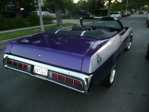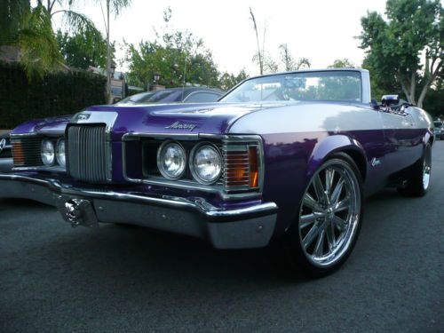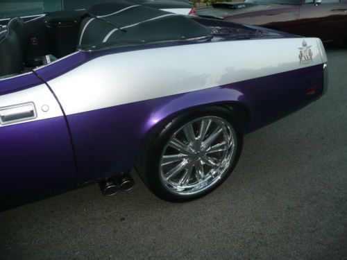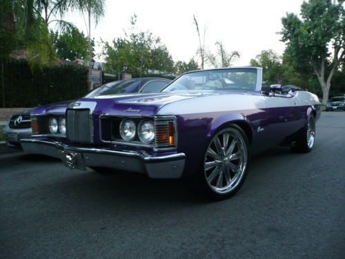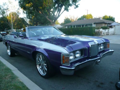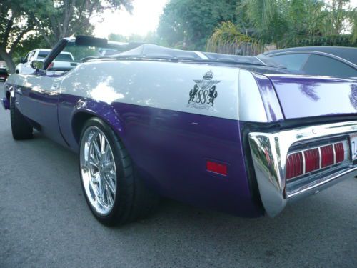 CUSTOM 1973 MERCURY COUGAR CONVERTIBLE XR7 NO RESERVE This is one of the coolest nicest Cougars on the road. It's an original 1 of 1 design by Heavenly Bodies Customs named " THE PHANTOM " inspired by the comic book hero. Signed and badged. Over $30K invested. Custom 2 tone paint Plum Crazy with silver sports stripes $10K. Custom black and silver interior with double stitching $5K. Power Convertible top with glass window not cheap plastic window $1500. $500 Custom Steering wheel. 20 inch FOOSE wheels low profile tires $3K. Custom Exhaust with Flowmasters $1K. Nice sound system, Bluetooth, I Pod friendly $500. Car has approx. 10,000 miles on rebuilt 351 Cleveland 2V $3500. Car drives strong and beautifully as it roars down the road, and can be used as a daily driver as the 2V is more economical than the 4V. The Mercury Cougar in it's day was known as the Rich Man's Mustang. The Boss drove the Cougar while the workers drove the Mustang. In recent years Cougar's are finally really appreciating in value. This is a chance to buy an asset that appreciates every year at a great price. Any questions call 310-990-0609 *A $1,500 deposit must be received via Paypal within 48 hours of auction ending. |