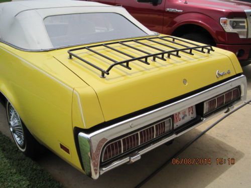 1973 Mercury Cougar XR7 convertible that has a 351cid cleveland 4-barrel engine with a automatic transmission. The car is equiped with factory air conditioning, power steering, power brakes and am/fm/cassett radio. The white power top works perfectly and is in excellent condition.The bright yellow paint is very good with no dents and no visible rust..The white leather interior is in excellent condition with no tears or split seams. This car is a very good driving automobile and is an excellent cruiser for cruise nights. |