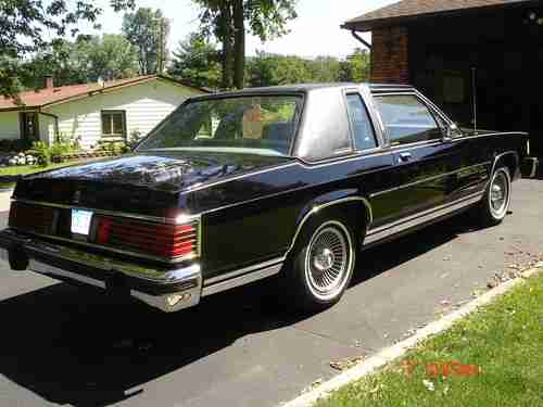 Auction is for a 1984 Mercury Grand Marquis 2 door hdtp. with 34,000 original miles. I am the 2nd owner. Original Black paint with a 1/2 padded vinyl top and original Gray cloth interiorwhich looks new. The car has never been in the winter and never hit. Updates include battery, tires, A/C compressor, 1 P/W motor and alternator. I purchased the car with 25K miles in 2008. The A/C needs a charge as i don't drive it that often. It is very straight and clean. It was Super Sealed at the L/M dealership when new. The are a couple of small dings in the drivers door edge from original owner but i did not have the heart to touch or repaint. The hood was repainted but the original owner did not know it , thus it must have been on pre-delivery or at the assy. plant but all other paint is ORIGINAL !. The spare is the original and NEVER been removed from the trunk ! It starts, drives excellent and cruises at highway speeds nicely.. It is a 5.0L V8 with the AOD overdrive. It has ALL power options and everything works including the clock. Call 734-9681281 for questions and i can forward additional pictures.