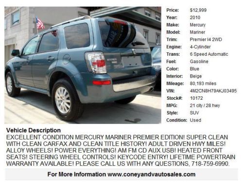 EXCELLENT CONDITION MERCURY MARINER PREMIER EDITION! SUPER CLEAN WITH