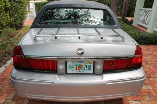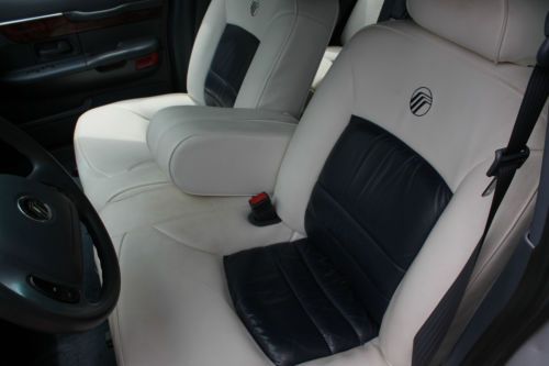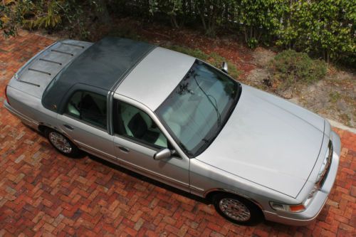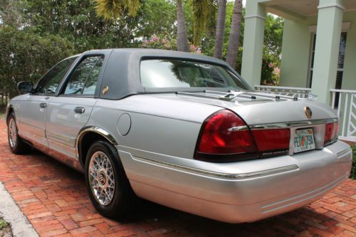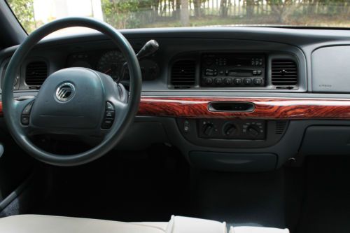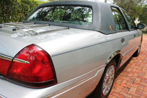 Welcome to a great opportunity. Every once is a while we get that "Little Old Lady, or Little Old Man owned, 1-owner, super low mileage Florida-kept creampuff" and we LOVE passing it along to our wonderful eBay clientele. And this is just such that occasion. You are viewing a very nice, extremely low mileage, Florida-kept and driven 2001 Mercury Grand Marquis Premium Luxury Touring Sedan. When we saw this car, in this condition, we knew we had to have it! You simply do not see them around this nice, with this mileage, very often, if at all. This Grand Marquis GS is extra-clean and priced thousands below what your local Ford-Lincoln-Mercury dealership would want for the same vehicle, assuming they could find one! Certainly an attractive color combination for this executive sedan. It has a wonderful Brilliant Silver Clearcoat Metallic exterior over a designer two-tone Navy Blue and Ivory leather interior, and Navy Blue Landau top. Combined with dealer-installed Chrome wheel trim rings, chrome and color-keyed bodyside molding, chrome wheel covers and thin Navy Blue pinstripe, and Gold Emblem Package, the appearance of this Grand Marquis GS is second-to-none. With a careful, mature previous owner, original Sunny South Florida miles, this beauty certainly stand outs. With only 19,900 original miles, this Mercury runs and drives perfectly. This Designer Edition Luxury Sedan is impressive. It was certainly the model sitting on the showroom floor, fully clad in this wonderful color and trim package. And I am sure at a substantial premium. But someone else's generosity is your good fortune. Don't wait too long, we simply do not see these cars in this condition, upkeep and mileage all too often. This was certainly someone's pride and joy. Most of our cars end with a simple click of the Buy-It-Now, or a call to our sales associate. Don't make the mistake of missing out on this rare find! This Grand Marquis is an absolute pleasure to drive. Completely loaded with full power options, this sedan has a 220-horsepower 4.6 liter V8 mated to a 4-speed automatic transmission with Overdrive. In addition to seating capacity for up to six adult passengers, this Grand Marquis comes nicely equipped with driver's side power seat, air conditioning, cruise control, power controls, an adjustable steering wheel, a remote trunk release, AM/FM/CD audio system, rear window defogger/defroster, intermittent wipers and heated exterior mirrors. Safety equipment includes driver and passenger-side airbags, ABS, Traction Control, factory security system and keyless remote entry, either by remote, or door keypad. The designer Navy and Ivory leather interior is in outstanding condition. As close to new as you could possibly ever ask for. It is roomy and impressive interior cabin for the Grand Marquis, with the light interior accented distinctively by the rich, wood trim and embroidered stitching on the front seats. And the beautiful high-gloss Brilliant Silver exterior finish is in excellent condition and is ding and dent free. The previous owner lived in Fort Myers and this car probably didn't see much Interstate travel at all. There are no rock or pebble nicks on the front of this car, and the finish is beautiful. Remember folks, only 19,000 original, documented miles). It was a garaged vehicle--and it shows. This Mercury Grand Marquis is in the type of condition that you never see at all! The pictures we have taken of the car are how we received the car. No professional detailing, no cleaning of the engine compartment, no high speed buffing and then spray wax to make it shine. No smoke and mirrors here. This is how it came in, and this is how you see it. You can eat off the engine and motor compartment, and you can eat off the undercarriage of this car. The finish is beautiful, and the interior looks as if it has hardly been sat in. The front bumper has a minor scuff on the right side that cam most likely be buffed out, and there is a minor scratch on the rear bumper. Extremely minor, just wanted to make you aware. Same of the chrome bumper trim (which really isn't chrome) its actually chromed plastic. It has some oxidation, obviously due to the age of the vehicle. Again, not a big deal, just want to make you aware. We would like to point out that the car will get professionally detailed by us for the successful new buyer, making it look near showroom. This car has been driven to the tune of about 1,500 miles per year. Just enough to go back and forth to the neighborhood clubhouse of the Country Club and to the local grocery store. A very well maintained vehicle, they serviced their car exclusively at SEARS in addition to the Lincoln/Mercury dealership. The fluids have been completely changed, as well as the windshield wipers, and it has a complete set of nearly-new Michelin Symmetry all-seasons radials all the way around. They are like new with approximately 500 miles on them. And these Michelin's are simply the best! No expense was spared in the upkeep of this car. The maintenance has been great, and this is one of those cars that you can't believe is available. Loaded and it runs and drives superbly. No rattles, shakes, squeaks, bumps or bruises. Everything works perfectly and properly, and all it needs now is a new home. You should be starting to get the picture here folks. Outstanding appearance and regular maintenance of this luxury sedan. Who will be the lucky, and I do mean very lucky, new owner. Very clean interior and the wood accents really define this ultra-luxurious interior. This is a great car! With a 220 hp V8 this luxury sedan really moves! And, if you live in the North East, don't worry about it. This Grand Marquis GS is equipped for any driving condition. With Traction Control and heated mirrors, winter driving is a breeze! We have this extremely attractive and extremely low mileage Designer Edition 2001 Mercury priced incredibly for a fast sale. Lowest priced in the country for this year and mileage. All 