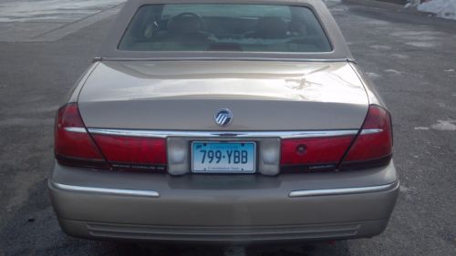 UP FOR SALE IS THIS 2001 MERCURY GRAND MARQUIS GS(PALM BEACH EDITION) THE CAR IS EQUIPED WITH A 4.6 LITER WITH POWER STEERING/POWER BRAKES/TILT/CRUZE/POWER WINDOWS/POWER MIRROWS/LEATHER SEATS/POWER DOOR LOCKS/KEYLESS REMOTE/AM/FM/CASSET/MULT-CD PLAYER./A/C/NEW BATTERY. YHE CAR HAS 58K ORGINAL MILAGE AND WAS BABBY AND GARAGE ALL ITS LIKE AS WE ARE THE SECOND OWNER .THE CAR WAS SENT MOST OF ITS LIFE IN FLORDIA GARRAGED UNTIL RECENTLY . THE ONLY REASION SELLING IS TO DUE DEATH IN FAMILY . THIS IS A GREAT FULL SIZE CAR AS IT RUN GREAT AND ULTRA SMOOTH ON THE HIGHWAY, THE BODY IS IN EXCELLENT SHAPE WITH NO DENTS OR RUST AS THE INTERIOR IS IN EXCELLENT SHAPE WE HAVE MOST OF THE REPAIR RECORDS IN THE GLOVE BOX AND WE ARE THE 2ND OWNER THE FIRST OWNER SOLD THE CAR WITH 2K DUE TO HEALTH REASIONS. THE TIRES ARE IN GREAT SHAPE AND HAS A NEW SPARE ON FULL SIZE RIM WITH THE MINI SPARE STILL THERE. CAR BE SEEN AND TEST DRIVEN I AM LOCATED IN RHINEBECK NY AND CAN BE CALLED AT ANYTIME AT 845-656-9785 DOUG OR CAN BE SHIP AT BUYER COST, THE BUYER PAYS ALL SHIPPING COST AND DETAILS FOR SHIPPING, THIS CAR IS SOLD (AS IS) WITH NO WARRENTY EXPRESSED OR GIVEN . A $500 DEPOSIT IS REQUIRED WITHIN 24 HOURS OF END OF AUCTION, ANY QUESTIONS PLEASE - MAIL ME AND GOOD LUCK !!