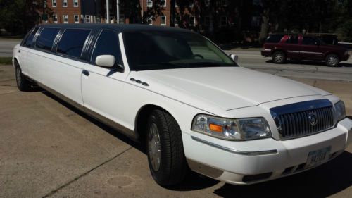 White 2008 Grand Marquis Stretch Limo, 10 passenger. Low mileage, very good condition, tires very good. Clean Interior, multi colored lights, bar area and new control command module. |