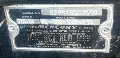 This is a 1956 Mercury 4 Door Hardtop with a clear title, I have the original Bill of Sale and the original canceled check from 1956, it does not run. If you have any questions please feel free to call me at Graves Auto Salvage, 803-640-5167 ask for Jared. Thanks for Looking!!