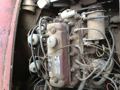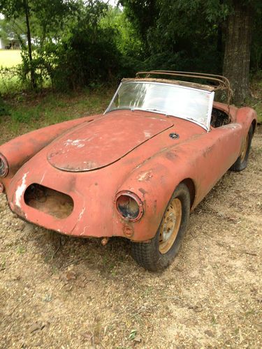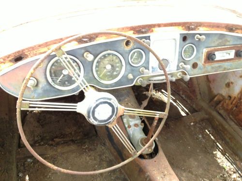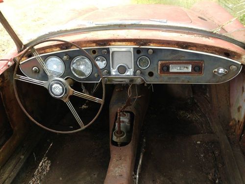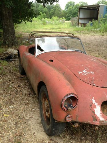 1956 MGA Convertible. Awesome find. Very good restorable condition. Dual carb. Complete engine and drivetrain. Does not run. Aluminum hood, doors, and trunk. Factory wood floors need replacing. Metal is very good overall - very little rust. Small rust spots below passenger door. Passenger rear fender has been dented slightly and repaired years ago. Door panels and some other interior parts included - good for reference to remake(see pics). No seats. Trunk rack included - never installed (no holes in trunk). Never was titled because vehicles were not titled before 1970 in Mississippi.