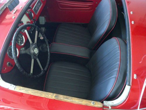 Is my MGA concours? No, not by a long shot. But she is a pretty daily driver (well, Hagerty Insurance won't let me drive her daily, as some of you will know). She does have matching numbers, though. I could have put in a replacement motor, but I chose to have the original rebuilt so that the body, chasis and motor would all match the original car which was built in late 1956 for the 1957 model year. So, you are buying a car that starts every time, runs really well and like every British sports car - leaks a little oil. The needles on the oil/water temp gauge read steady, exactly where they should. She doesn't overheat, like a lot of MGAs. I cruise along at 160*- 170*, and it might creep up to 185* if I am sitting in traffic on a really hot day. I can't get the square end of the speedo cable to stay lodged in the side of the gauge, so it may have to be replaced... and the odometer hasn't worked since it rolled over 26K sometime in its distant past. But I don't hold that against her. I confess that my tool chest toppled into the side of the driver's front fender and left a nasty scar and it has only rec'd a temporary cosmetic response from me. Most people don't see it immediately, but its all I see now when I go out in the garage. I know you can't see it in the pictures, but trust me its there. Eventually, as a new enthusiastic owner, you will want to redo the body work... but she still looks good for the time being. I am constantly having people shout out from the sidewalks, 'Nice car!' I have taken it on a couple of three-hour trips with no issues whatsoever. She is mostly original, but there is a new electronic ignition hidden inside a classic-style distributor, an electronic fuel pump, and a modern spin-off oil filter rather than the old paper style. She has new bumpers, new windshield glass, a new radiator and fan, a new gas tank, straps and sending unit, as well as a new wiring harness. Last year I put on new 60-spoke rims and new rubber and she rolls along so smoothing... ah! I'm going to miss it. The new exhaust purrs in that unique MGA way, and the heat is deflected nicely by a shield under the driver's seat and Dynamat under the new carpet. I re-upholstered the interior in new leather, and the rag top is also new. My MGA has only been out in the rain twice since I put her back on the road... not on purpose, but I did get caught those two times so I know the wipers work! There is no rust. During the body-on restoration, I blasted the frame and body with a soda blaster (not sand or plastic), and painted it with POR15, or whatever that super expensive rust inhibiting paint is called. There are new 'F' sections, that is sills and pillars, on both sides as well as rocker panels and other body parts where they were needed. Like every old classic, it is a work in progress and there is always something fun to work on, plan for, and tinker with. Why am I selling this car? Because I am moving into a condo and I have no garage any more. Don't pity me, though, because I'm using the proceeds to buy some land... which I want more than the car. Hagerty appraised it at 24K, but I think it is worth 19K, even though I have over 24K into it... at the very least. So, please, no low-ballers. I won't even respond to those... I'm a military chaplain so I have told you the truth about this car. Bring in an offer of 19K and its yours... I would ask more, but that driver's front fender is haunting me. |