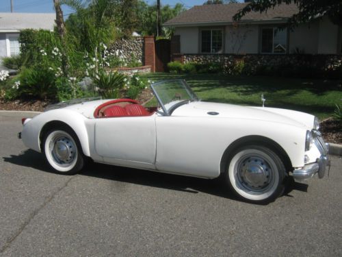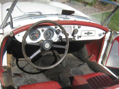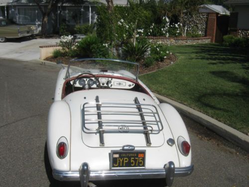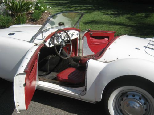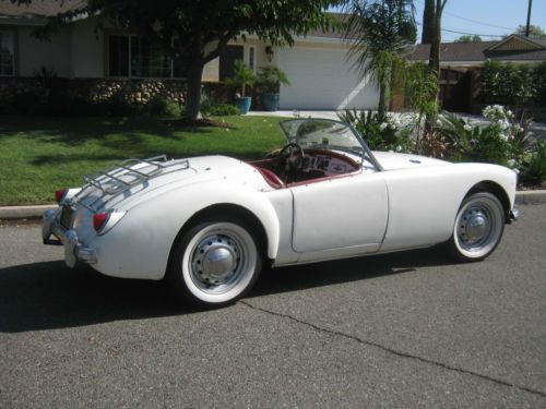 MGA Ca. black plate one family owned survivor 1957 family estate sale, family owned since new MGA, this is a nice solid driver it starts right up brake pedal is right at the top, clutch engages nicely, transmission operates as it should, no clunking or whining in the drive train, engine runs out nice, no ticking, blow by or smoke, its been painted and upholstered along with a engine rebuild once my years ago and over all shows normal wear and tear but still draws plenty attention, its a honest solid nearly original car, recent maintenance includes tires, fuel tank, fuel pump, tonneau cover, single Weber carb conversion ( the original carbs are included ) it also includes a rare factory ? aluminum hard top ( please note I was unable to locate the latch's and hard where for the hard top ) the soft top canvass will need replacing and some minor attention to the top frame, I have some additional photos of the underside and engine bay etc. to email interested bidders please just ask, as the old saying go's a picture is with a million words the pictures will be the best cosmetic description of the car, mileage shown 01360 its obvious 101360 / terms sold as is with clear Ca. title, a $500.00 pay pal deposit due within 24 hours of auction end, balance due via cash, casher's check or money wire in no more than 7 days of auction end no exceptions, if this is the one you've been waiting for bid to own NO RESERVE |