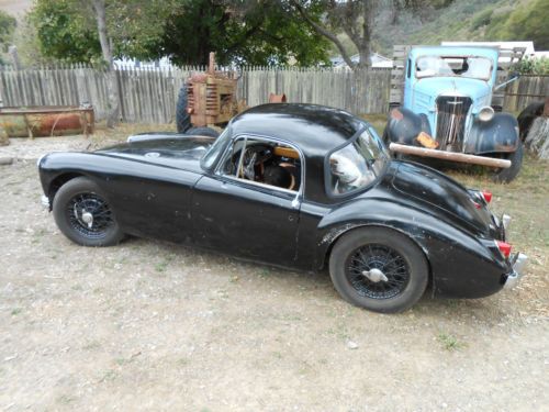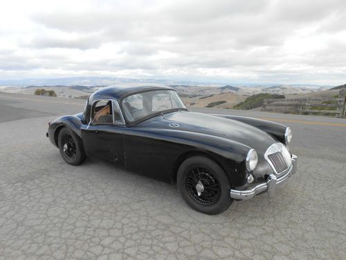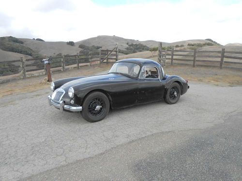 This charming 1957 MGA coupe was found languishing in a dark garage in the Berkeley Hills. It was owned by an eccentric character who looked like an older Elton John. We became friends over free firewood, which he appreciated very much. One day he called to say he knew he would never get to the car and would I like a shot at it. I hurried over and struck a deal. Over the last 6 months, I have resuscitated the old coupe and just completed a 50 mile back roads circuit. It is indeed charming and has not been registered since 1979. I have done a total brake job, tune up, fuel tank, and that's about all it took. I had the starter redone at a reputable shop and it performs very well. The wiring is in a bit of a disarray and will need an expert to sort and patch or replace. The interior is also pretty bare. The seats are very soft and inviting. The back glass and gasket are also in fine shape. The body is astounding with not much rust and the floor boards still have the original varnish on them. The clutch slave cylinder was replaced and it shifts well. I have never topped 55 mph and the old pirellis still hold pressure and the road. The fuel gauge is not working and the interior lights are. There is a sizable door ding on the driver's side and the doors themselves are difficult to close. I replaced the strikers and they are needing further adjustment. I am running an aftermarket fuel pump as Moss was out of stock units. Overall I have a wonderful 57 year old '57 MGA Coupe. It's very graceful and is now reliable. It holds a charge, stops ok, and always starts right up. I get so many compliments on the car, it's overwhelming. It is poetry in motion and if it tickles your fancy, I will send it your way.