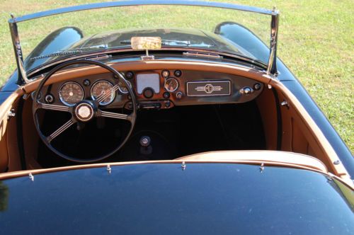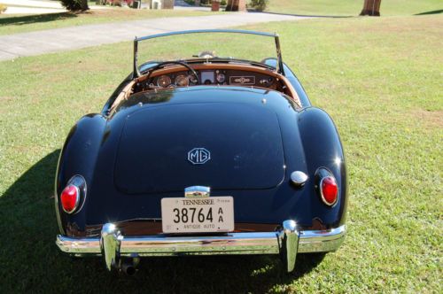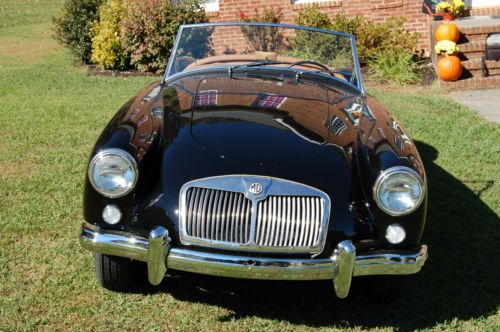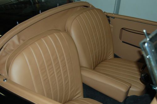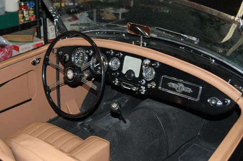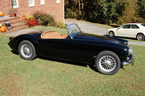 1959 MGA excellant driver. Over $10,000.00 in parts were purchased for this car. Frame and all major suspension components were sand blasted then coated with POR-15. All inner and under body parts coated with POR-15. The drive train is from a 1971 MGB. This will let it perform quite well on interstate highways.Here is a partial list of new parts installed on this car : All seals, gaskets and o-rings.Wireing harness with new alternater.Intake manifold and Weber down draft carb. Complete exhaust system. Complete Brake System. Windshield, rubber gasket, screws and fastning brackets. Deluxe leather interior kit, carpet kit and controll knobs.Vinyl fitted tanau cover. Radial tires and tubes. Black paint job. The only thing that doesn't work is speedo and tach and will try to get them sorted out this week. The car looks good, runs good and stops good. Will make some one a great driver. |