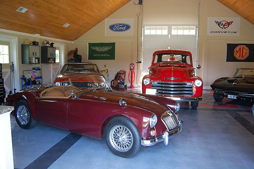 Disc Brakes, Chrome Wire Wheels, Never seen rain, Mechanically perfect, recent complete dual carburetor rebuild and clutch master cylinder replacement by certified British Car Master mechanic. Great Tires, no rust, complete. Never been hit, stored in temperature controlled car collection garage. There are few MGAs of this quality left. Own a piece of automotive history. Full size spare on chrome wire wheel, Side window inserts and Top in great condition. Even the original crank rod for crank starting (never used).