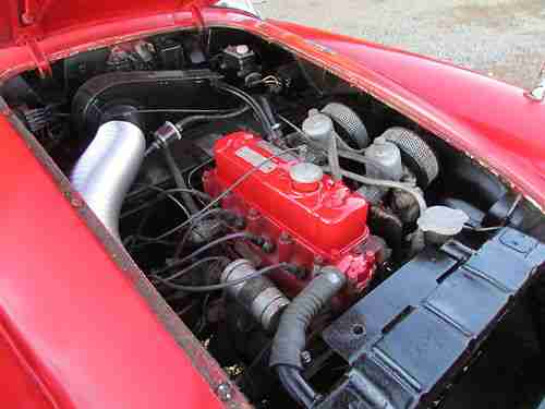 This 1958 MGA has been refurbished to an excellent driver condition. It was recently pulled from a shed in Albuquerque NM, where it sat dormant, without being driven for 32 years. The gas tank was removed, flushed, painted and found to have no corrosion. After cleaning the fuel system and carbs, and lubricating the cylinders, the engine fired up immediately on the first try. It runs smooth and strong, idles nicely, and does not smoke, a true testament to the dry climate of New Mexico. All clutch and brake hydraulics have been rebuilt and work perfectly. All the gauges are working. Original factory paint color was a deep red. The older repaint has been touched up and buffed to a high luster, but still has lots of patina, cracking, and chipping around the edges. It can be driven and enjoyed as is, but really should eventually be repainted to take it to a higher level for show. It has two isolated areas of rust, these will be easy repairs, one hole in the trunk floor needs to be patch welded (no need to replace the floor), the other is the right side rocker (left side is rust free), see photos. Rocker and front bottom corner of quarter panel need replacing. These two replacement panels are available from Moss Motors for $65 each. The rest of the body and chassis are rust free. With 40 years experience restoring exotic cars, I can provide these repairs in my restoration shop for parts and labor fees following your purchase, if you decide. It has 4 brand new chrome wire wheels (correct 48 spoke) cost $1400, new Vredestein tires, new convertible top, new mirrors, and more. The top frame is original and perfect, the side curtains are original and need attention. Weather seals need replacing. All fluids have been renewed including, engine oil, transmission, differential, hydraulics, and grease fittings. This is a great looking and strong running MG for someone who enjoys tinkering and minor sorting to achieve perfection. Inspections are welcome in Taos, NM. I have a clear NM title ready to sign over to you. Buyer is responsible for shipping or pick up. I will load the car, in Taos, onto your transport. $750 deposit is due within 48 hours of auction closing, remainder is due by secured funds within 7 days of closing and before pickup. If you have questions, please call Kinlock at 575-770-2300