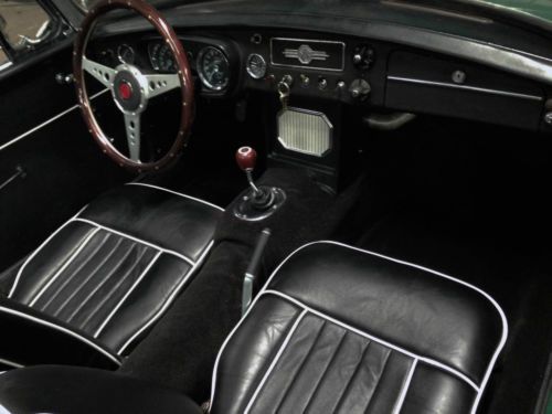 This is an extremely rare version of the Classic MGB. It’s getting harder and harder to find such a nice original spec early car. The early “pull handle” MGBs are an extremely rare MG. The very earliest cars not only had the more classic metal dash, but also exterior pull handles as well as many other distinctive features. Most were made in more classic color combos similar to the MGA for example. Very few of these early cars survive, and even fewer in their original configuration with no significant modifications. This car was restored sympathetically to keep as much originality as possible with the intent to compete in the MG show circuit. It has won several awards locally and regionally, and is a beautiful example. The outside is finished in a dark British Racing green, which is a rare period color, used on all the classic MG cars. The interior and top are finished in a beautiful black with white piping. The seats were custom sewn to replicate the orignal pattern and black leather. They are not one of the budget minded kits available out there. Everything in the interior is done to stock specifications, with the only deviation being the upgraded period style wood steering wheel and matching shift knob. The engine bay has been restored with an eye for originality also down to the correct reproduction decals. The car has aso been fitted with a set of reproduction Minilite wheels which were popular as an upgrade when the cars were new. These wheels are 15' which are a slight upgrade giving the car a more purposeful stance and better handilng. It wears new tires as well. Mechanically it is in great condition. Recently the entire brake hydraulic system and Carbs/fuel stytem were replaced and/or rebuilt. It has 65+ lbs of oil pressure at running temp, and does not smoke. The original trans shifts well with no bad noises or popping out of gear. Cosmetically, its in great shape as well. The paint is excellent having been repainted to a good standard. The Conv. top is also new and is in great shape. It also comes with it's original jack (pictured) and the jack bag It has its tonneau bars (not pictured) with storage bag (not pictured) and the original half tonneau cover. While not perfect, this is a very nice sympathetically restored car that has seen limited use outside of shows and club drives. Cars like this rarely come up for sale. It is being reluctantly parted with, so Please be a serious bidder. Make no mistake it will sell. I reserve the right to end the auction early as it is for sale locally. Terms: This car must be paid for within 5 days of auction end. Buyer is responsible for shipping, however, I can help arrange with a shipper I know at a substantial discount. Of couse, sold as is where is with no guarantees or warranty. To contact me directly, call 405-420-6996 or email