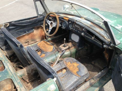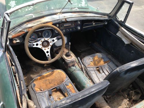 VIN # GHN3L/103699 CA LIC # 393 HZE BODY # 093198 ENG # 18GB-U-H55043 KURT TANNER RESTORATIONS, offers for sale here on Ebay, a 1967 MGB Roadster with wire wheels. This year for the B is generally considered the most desirable. The body, interior, and chrome trim still retain the early clean looks of the original design. The high compression engine now has the improved and more durable five main bearing crankshaft. The gearbox is still the non-synchromesh first gear unit, which is in keeping with the charm of the early cars. This car was found a few years ago in a barn in Bakersfield, California. It was a running and driving car ten years prior. The car was stored due to the owner's health problems. The car appears to be very original and in decent condition for a straightforward restoration. Mechanically, the car is very original and complete with it's correct engine. The mileage reads 43,701 which could very well be accurate. The engine will turn over by hand or by putting the car in gear with a push. The rest of the drivetrain's condition is unknown, but appears original and complete. The gearbox will shift through all the gears. The original air cleaners are present. Bodily, the car has a decently solid and straight shell with some typical rust-through in the rear doglegs and some rust cracks just starting in the front floors. The rockers and front fenders on both sides appear nice and solid. The trunk floor is good. The previous owner relocated a 12V battery to the trunk compartment. The pan in front of the radiator has been modified to most likely clear an auxilary cooling fan at some point in it's life. All of the panels open and shut OK, with decent alignment. There is a period luggage rack installed on the trunk lid. The interior is original, but has mostly deteriorated and needs a full retrim, as evident by the photos. The original gauges and dashboard switchgear appear OK. The seats are the correct and original ones. The top frame sticks could use some straightening. The car has a non-standard steering wheel. The car rolls and steers fine for transport. It is sold with a clear and current CA title. This car is available for inspection and can be viewed in Southern California. $3,950. KURT TANNER RESTORATIONS. 909-920-9221, work. 909-241-1051, cell. |