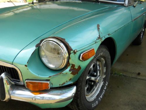 1974 MGB CONVERTIBLE 74' LAST YEAR THEY DID THE CHROME BUMPER HAVE ALOT IN IT ALREADY SOUTHERN CAR NOT EXPOSED TO SALT OF ANY KIND 4-SPEED MANUAL TRANSMISSION NO OVERDRIVE PLEASE REFER TO PICTURES IF YOU DO HAVE A QUESTION JUST EMAIL ME CLEAR TITLE BUT BECAUSE OF THE YEAR ALABAMA DOESN'T REISSUE ONE WILL NEED A NEW BATTERY HAS TO BE JUMPED TO START HAS NEW WIRES AND PLUG'S NEW GASKETS AND BUSHING INCL. FREEZE PLUGS HAS A RUST SPOT ON THE HOOD CAR STILL NEEDS SOME RESTORATION BRAKES ARE GOOD TIRES ARE LIKE NEW LUGGAGE RACK ON THE BACK TRUNK WILL NEED TO BE TRUCKED OUT TOP HAS SMALL TEARS IN IT INTERIOR HAS TEARS IN IT PAINT IS SUB PAR GREAT PROJECT FOR SOMEONE THAT HAS THE TIME HAVE A GREAT DAY!!!!!!!!!!!!!!!!!!! |