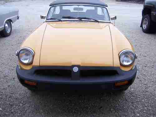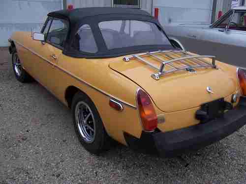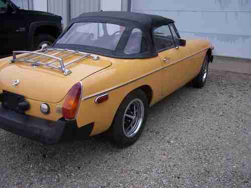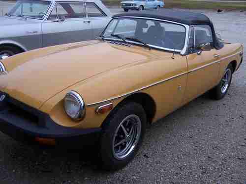 1977 MGB Convertible Garage Find sat in garage for 15 Years. 25549 Certified original Miles. Clear Wisconsin Title. New Battery . New Paint no rust thru was painted because of dents from sitting for 15 years. New Master Cylinder ,rt frt caliper , lt frt caliper ,front and rear brake shoes. New fuel tank , new steering rack , Rebuilt carburator runs good but should be tuned by an mechanic who knows English cars. New sunvisors , New convertible top , New tires with trim rings , New side mouldings ,New exhaust system ,New alternator , New catalytic converter and new trunk carpet.