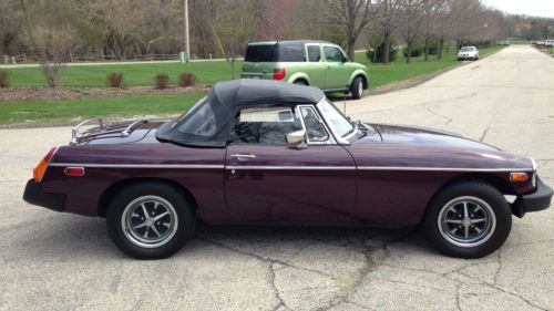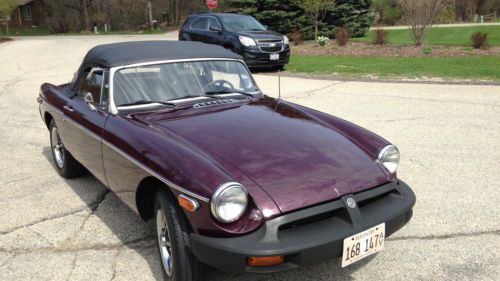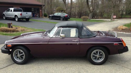 1977 MGB 2 DOOR CONVERTIBLE 4 SPEED WITH OVERDRIVE, NEW RECONDITIONED ENGINE, NEW CLUTCH, NEW TOP, HAVE RECEIPTS FOR ALL THE WORK DONE INCLUDING A NEW PAINT JOB METALLIC BURGUNDY COLOUR. DRIVES AND RUNS LIKE NEW. ALWAYS GARAGED NEVER DRIVEN IN WINTER. ALSO COMES WITH A CAR COVER.