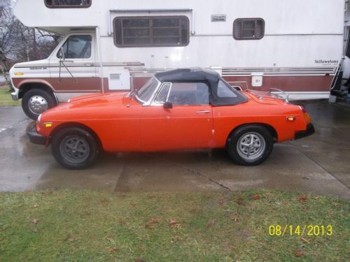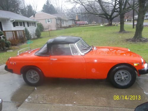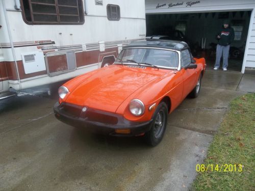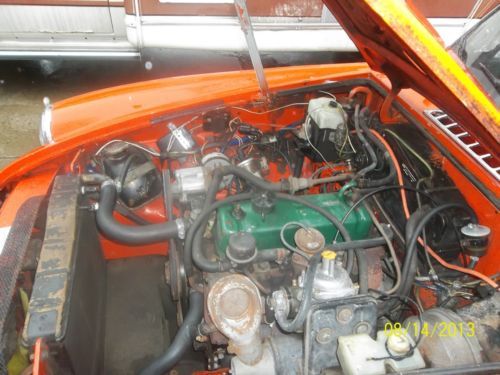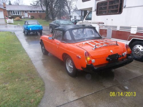 Here i have two 1979 MGB Cars for sale Buy one get one free. One is in good running condition other one is hit in rear. First is the Orange MG clear Ohio Title it is a very good running and driving car body is very nice it was rust proffed at one time there is no signs of rust its Title is showing 79.142 miles runs very well with no smoke.All glass is good,Exh is good and very quite,Tires are good,All lights work as they should,It has a new conv top with the canvas top that covers the cars interior if you have the conv top off.Paint is fair to good good driver quality.