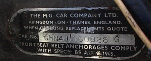 Car Number is GHN4U160828G which stands for: G - MG H - Leyland type engine N - 2-seater 4 - Type serial number U - Standard 160828G - Serial number
